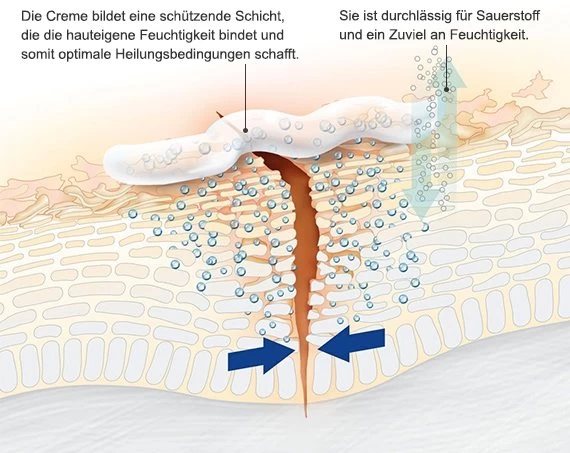 - Hocheffektive und punktgenaue Pflege – schafft optimale Heilungsbedingungen und regeneriert sehr trockene und rissige Haut.