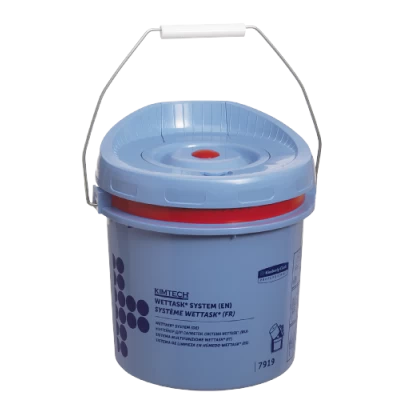 Nachfüllbares Rollen Wischtuch Spendersystem | Farbe: blau | Maße (L x B x H): 23,5 x 22 x 22 cm | ca. 4,5 L Desinfektionsmittel-Lösung und Wischtuchrolle in den Spendereimer füllen, Deckel schließen und den Wischvorgang starten | Wiederverschließbarer Deckel schützt vor Kontamination und Verdunsten der Lösung | Bequeme Entnahme der einzelnen, abreißbaren Vliestücher | System ist einzeln zu bestellen | Tuch-Maße: ca. 15,2 x 30,4 cm